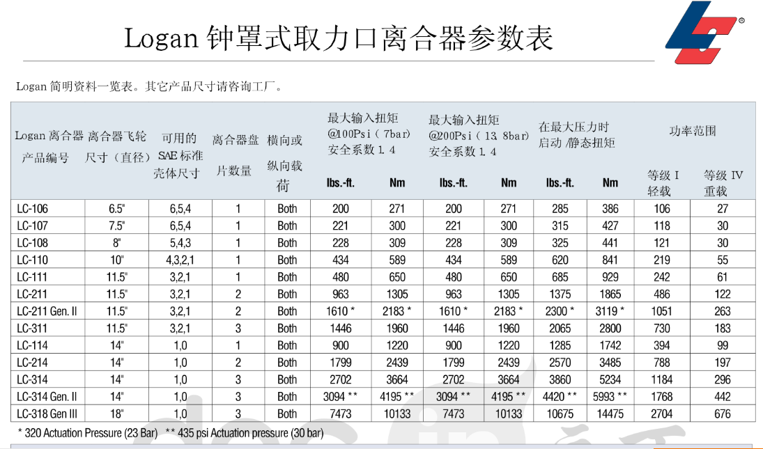 Logan從1975年運營以來, 提供了完整的氣液操縱的多片式離合器, 多片式制動器, 取力口離合器的產(chǎn)品線。離合器盤片在各種濕式和干式離合器和制動器上的應用。上海希喆銷售,技術(shù)人員和客戶服務部門能夠回答關于產(chǎn)品目錄,零件和維修細節(jié), 并且按照你的特殊的設計給出報價